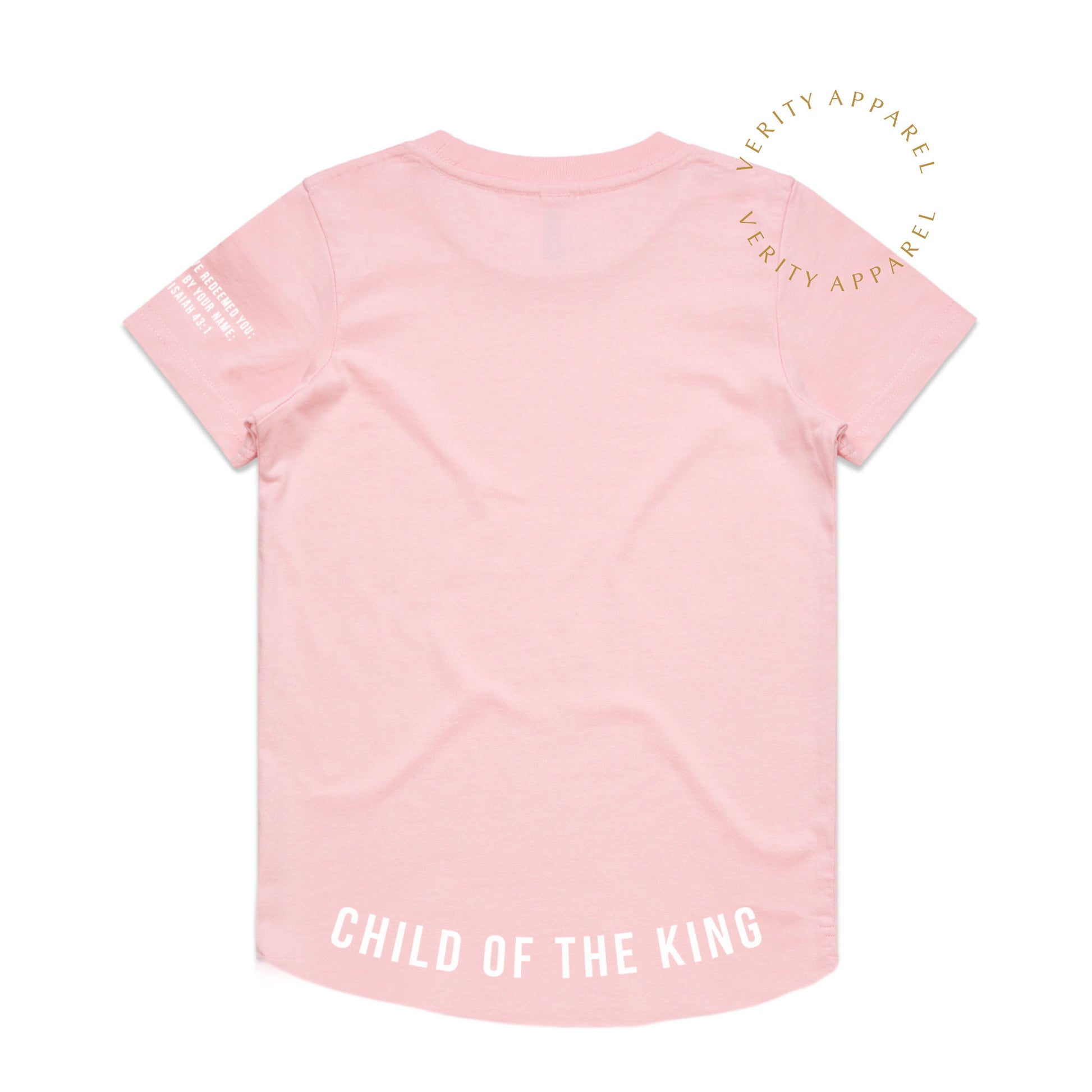 Featuring our custom designed Lion print on the front, 'Child of the king' on the back and the powerful message of Isaiah 43.1 on the sleeve "Fear not, for I have redeemed you. I have called you by your name. You are Mine".