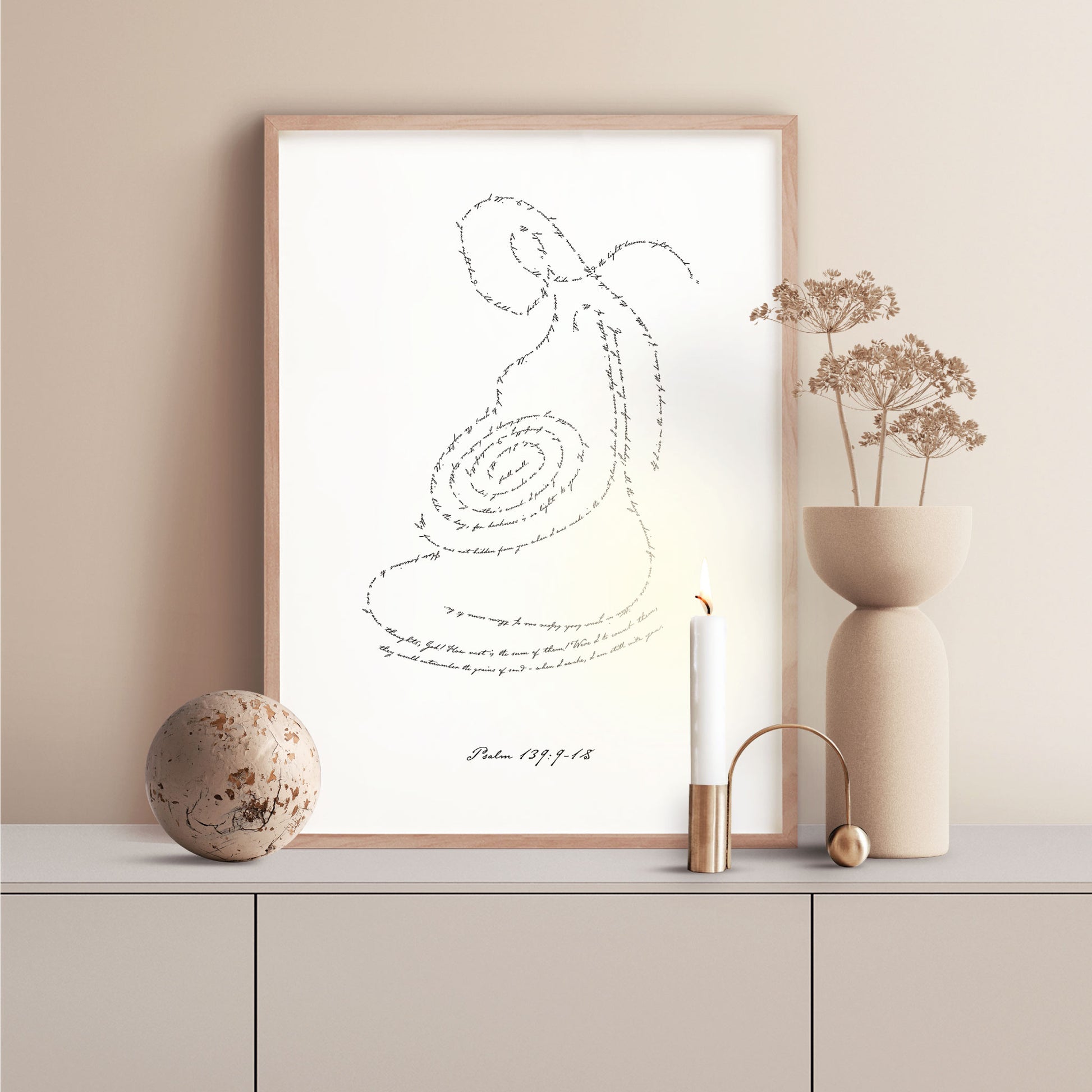 Psalm 139 intricately placed together to form the imagery of a Pregnant Woman.