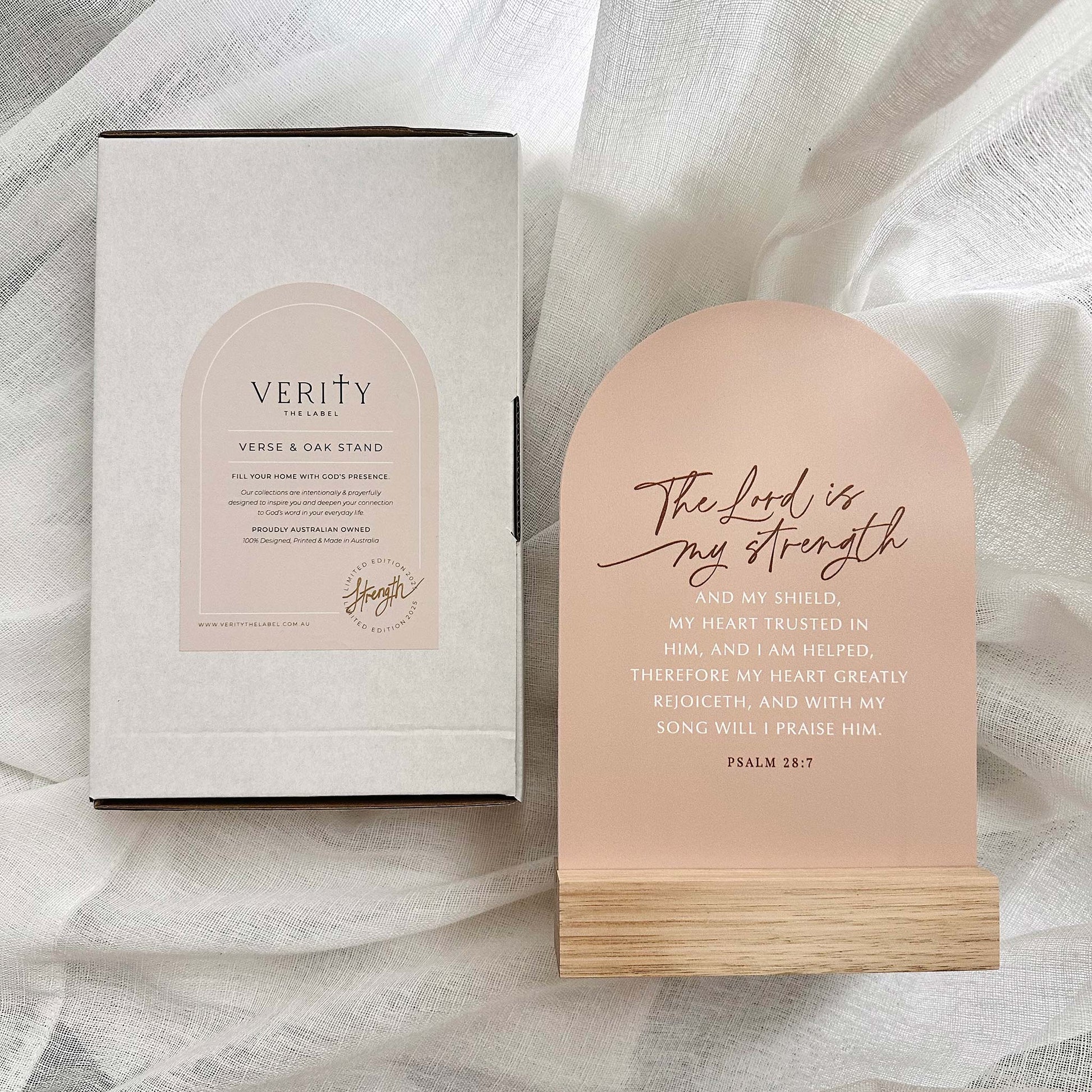 ‘Strength' Small Verse & Oak Stand